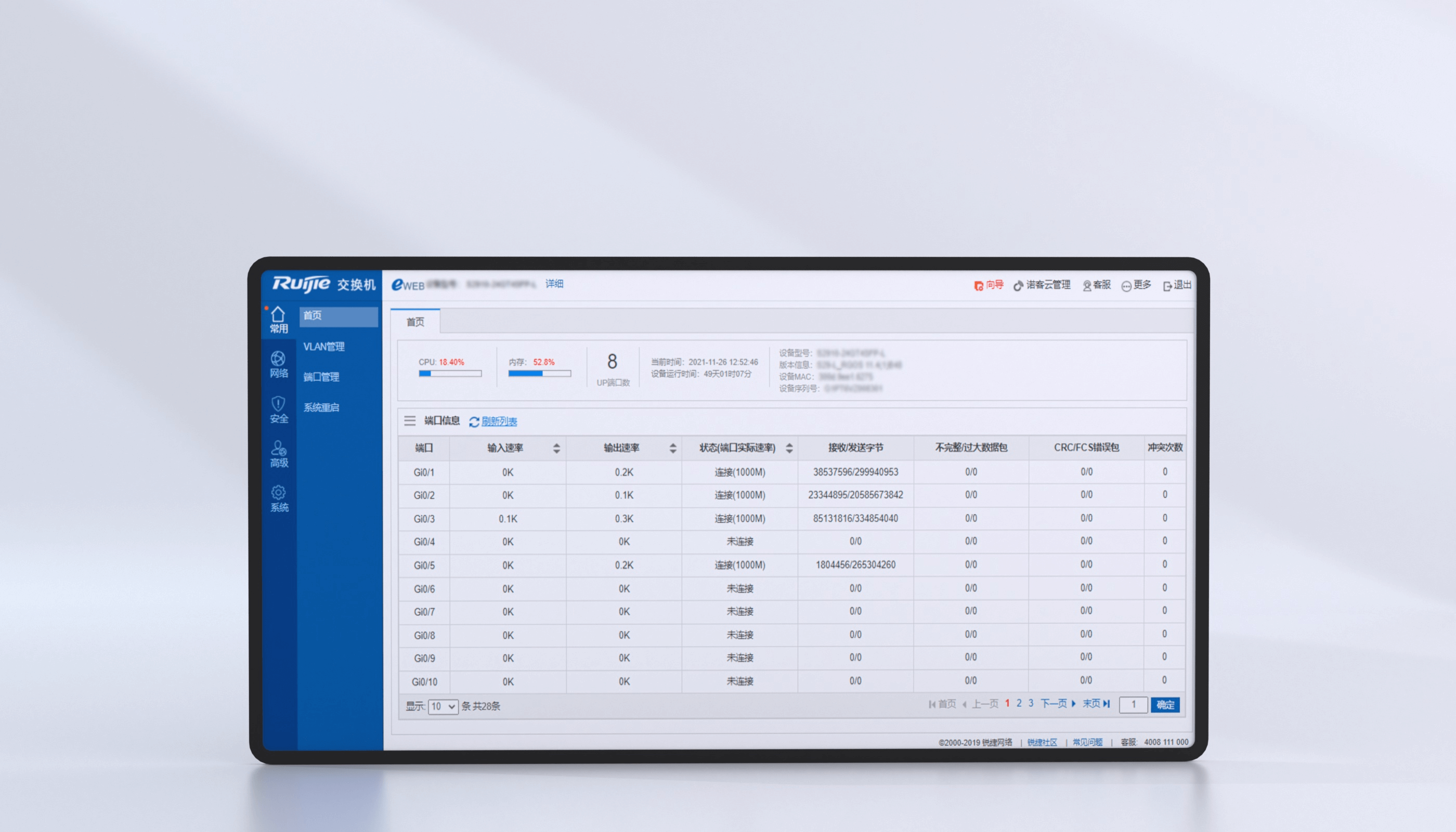 RG-S6120-L系列交换机为大型网络汇聚、中小型网络核心提供了高性能、完善的端到端的服务质量、灵活丰富的安全设置,满足高速、安全、智能的企业网需求。